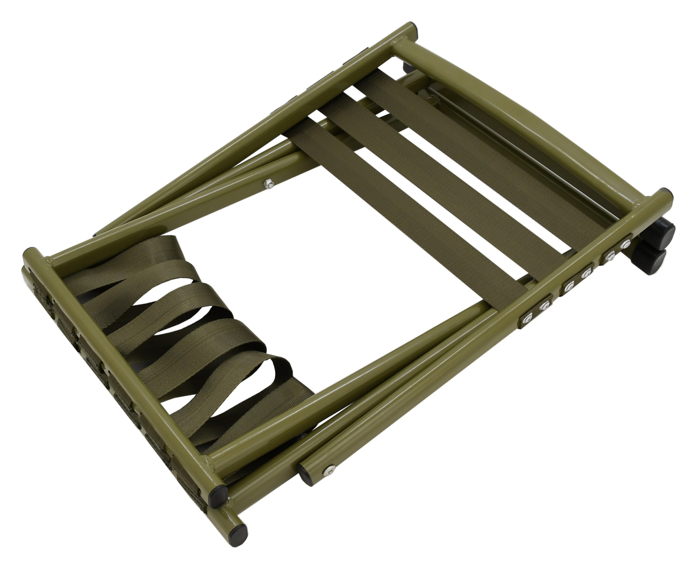 Židle je lehce a rychle složitelná, vybavená dvěma opěrnými nohami a opěradlem. Rozkládá se tahem a napnutím pásů, čímž vznikne pohodlné sedátko a opěradlo.