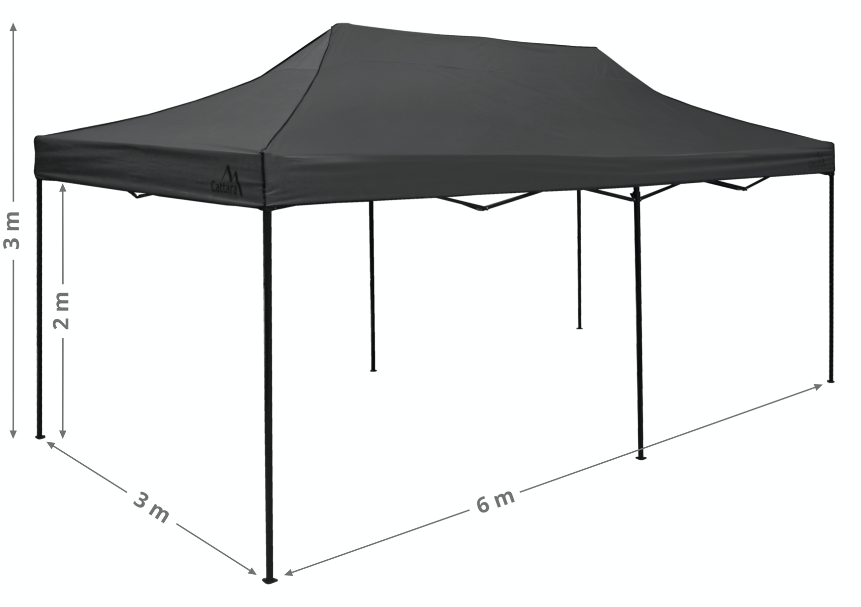 Skládací párty stan s rozměry 3 x 6 m s podchozí výškou 2 m.