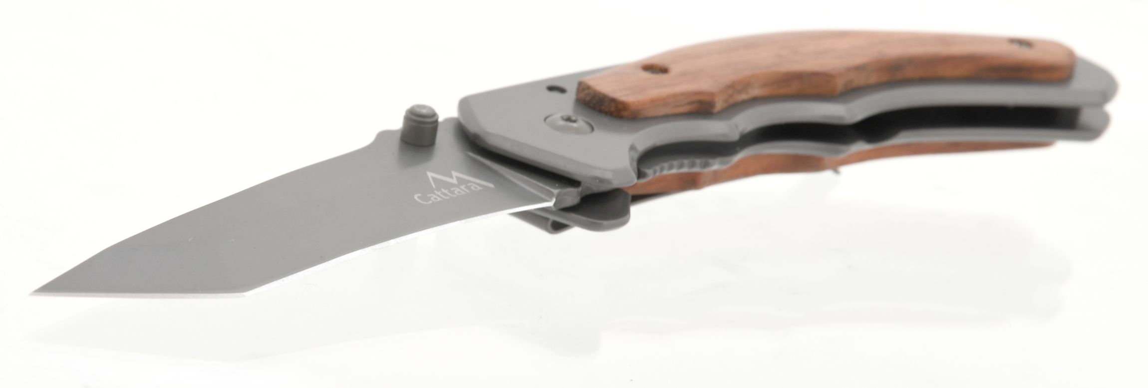 Rukojeť je doplněna klipsem k přychycení za okraj kapsy, opasek apod. Střenky jsou kvalitně zpracovány ze dřeva uložého na rukojeti z nerezové oceli potažené titanem.