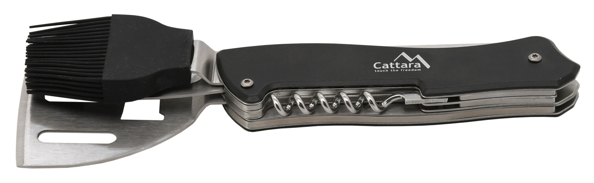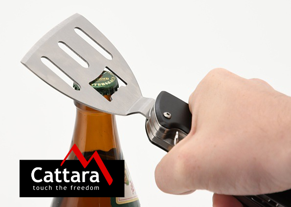 Nástroj je opatřen obracečkou, otvírákem na korkové špunty, otvírákem na zátky lahví, vidlicí a mašlovačkou.