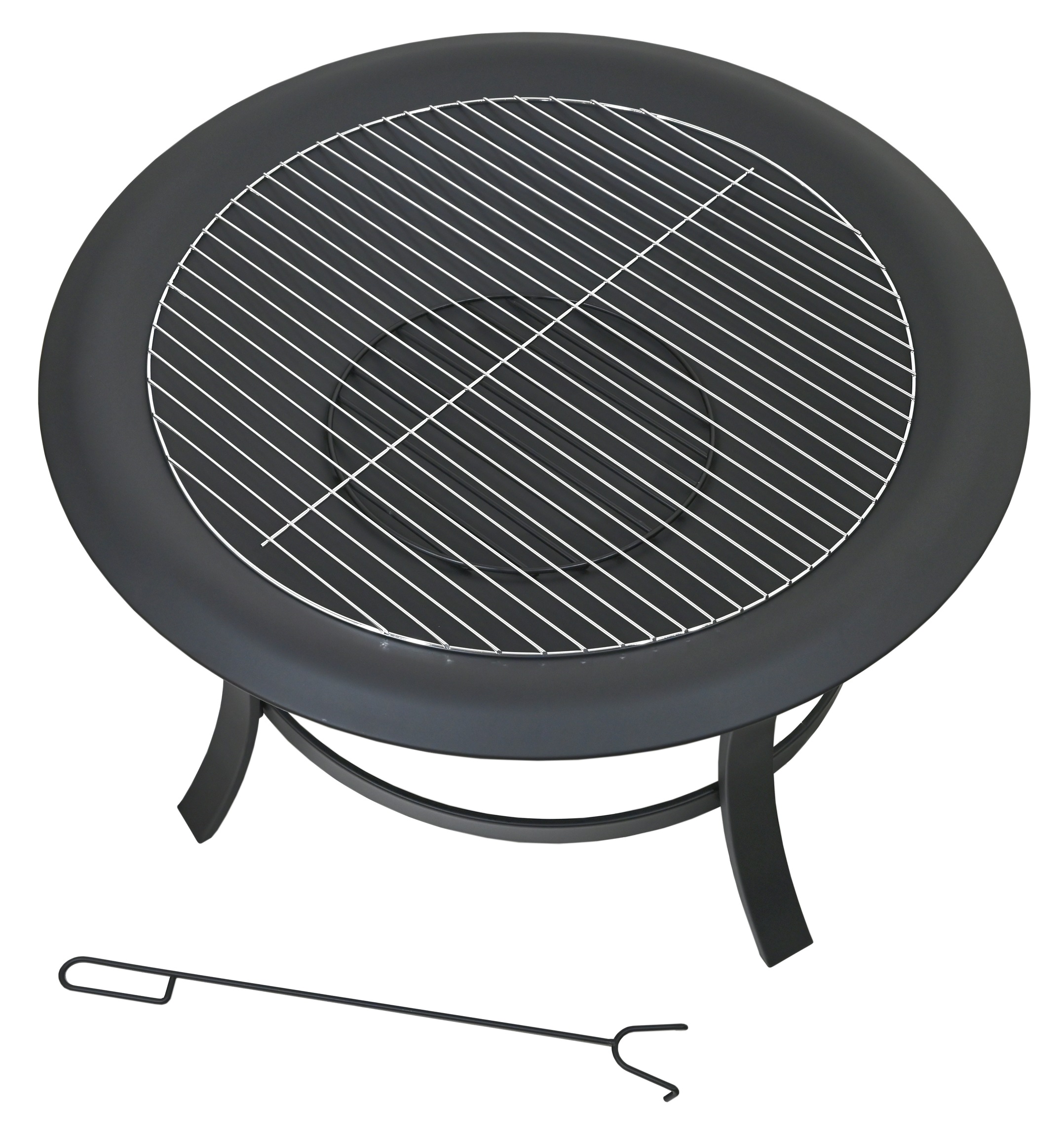 Stabilitu zajišťuje dvou prstencová konstrukce se 4x nohami z kvalitní oceli s vysokoteplotním černým nátěrem. Pro grilování je ohniště opatřeno roštem průměru 60 cm z nerezové oceli.
