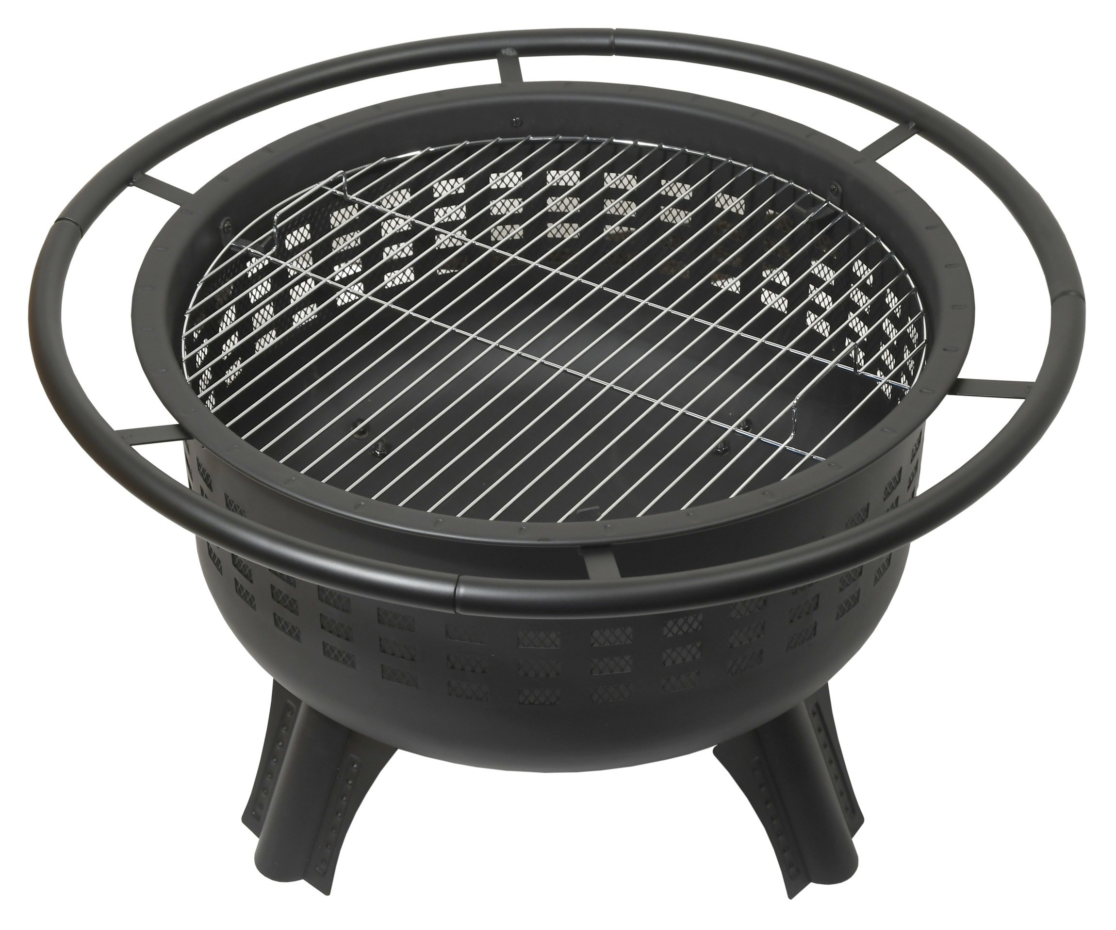 Konstrukce ohniště je vyrobena z kvalitní oceli s vysokoteplotním černým nátěrem. Pro grilování je ohniště opatřeno ocelovým roštem průměru 61 cm.