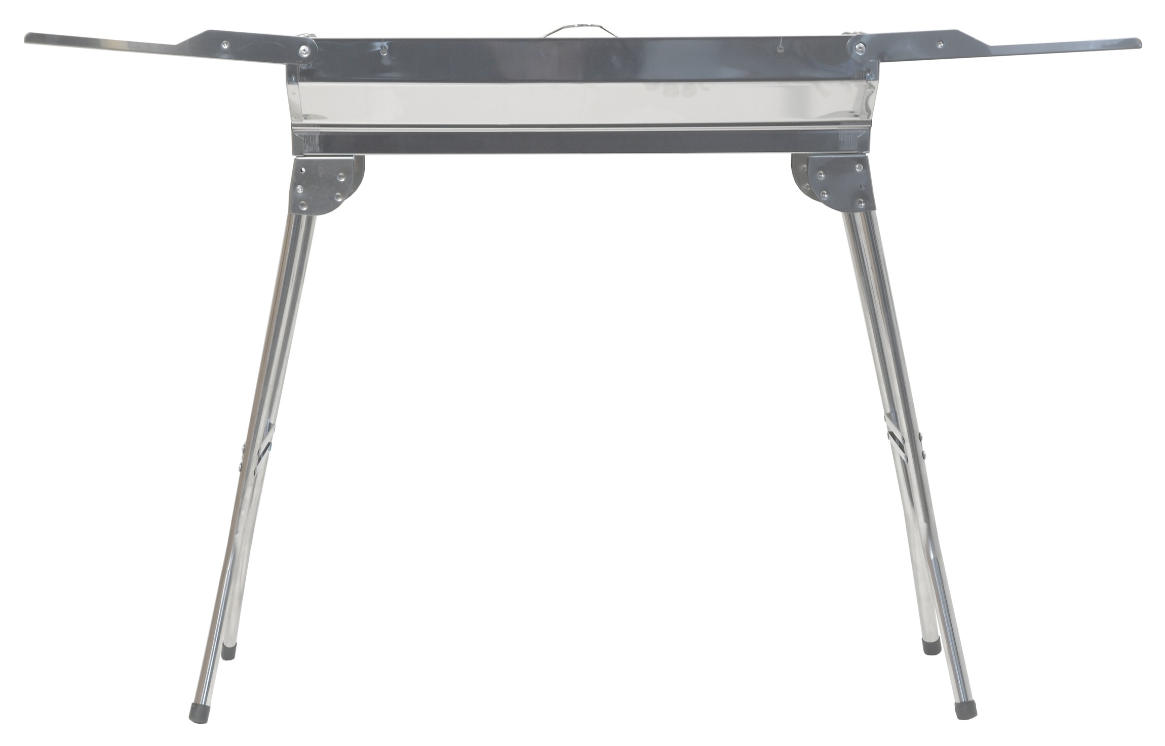Konstrukce je vyrobena z kvalitní nerezové oceli s lesklým povrchem. Stabilitu zajišťují vyklápěcí nohy. Rozměry grilu 112 x 30 x 71 cm.