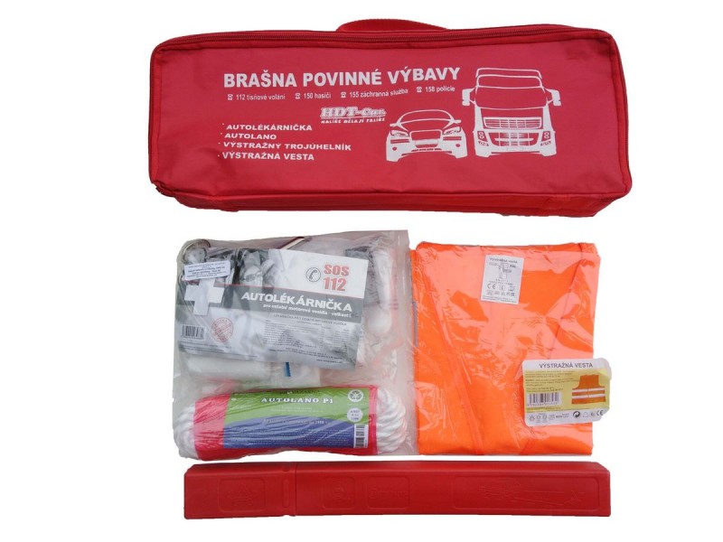 Vybavte svůj vůz bezpečnostní povinnou výbavou jedním nákupem. Brašna s povinnou výbavou nabízí základní doplňky - autolékárničku náplň, výstražný trojúhelník, tažné lano a reflexní vestu. Obsah brašny odpovídá vyhlášce č. 206/2018 sb. Ministerstva dopravy.